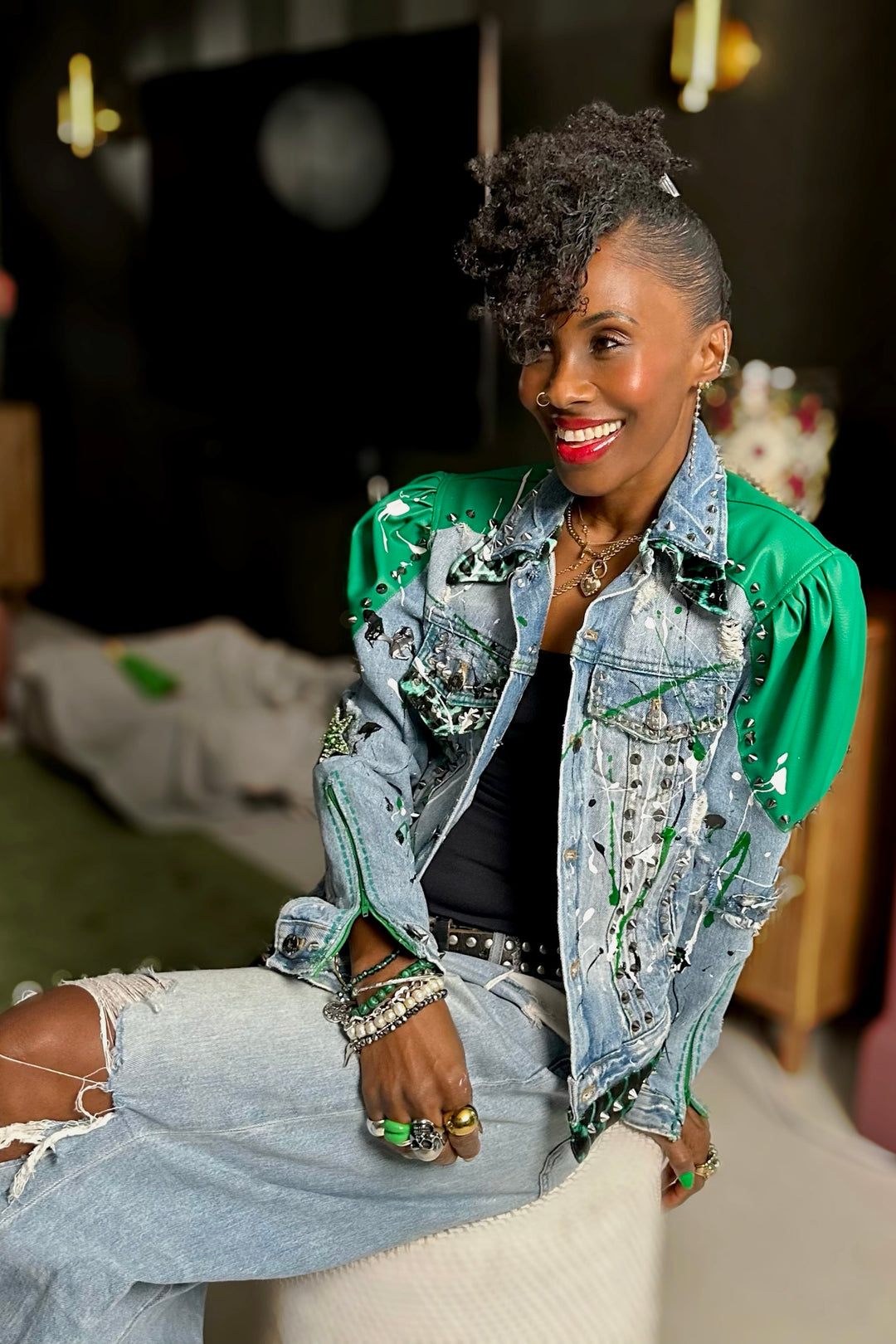Our online shop showcases a carefully curated selection of one-of-a-kind pieces. Every pre-loved denim jacket is thoughtfully handpicked and completely reimagined by us. Whether it's cut, distressed, embroidered, patched, painted, sprayed, or studded, each piece is meticulously handcrafted and reimagined to become a wearable work of art.